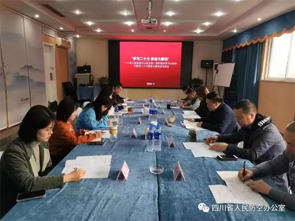 四川新闻网成都12月13日讯 党的二十大召开后,四川省人防办把全面深入学习贯彻党的二十大精神作为首要政治任务,通过多种形式组织全办机关各处(室)、直属单位党支部(党委)开展了深入学习贯彻党的二十大精神主题系列活动。各党支部(党委)重点围绕党的二十大报告、党章修正案、中央纪委工作报告等精神,做到第一时间学、原原本本学、持续跟进学、深入研讨学、结合工作学,迅速掀起学习宣传贯彻热潮,确保党的二十大精神入脑入心、落地见效。