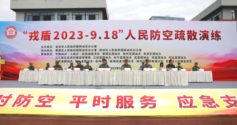 四川新闻网成都9月16日讯 9月14日,宜宾市国动办牵头组织开展“戎盾2023-9•18”人民防空疏散演练活动,旨在检验国防动员队伍综合协调和组织指挥能力,提升全民国防动员和人民防空意识,强化国防宣传教育进学校、进街道、进社区,进而延伸到社会各领域。市国动办干部职工、各区县国动办负责人及国动办(人防办)应急通信分队、翠屏区教育、叙州区公安、消防、卫健,叙州区赵场街道五香社区、宜宾六中鲁能校区教职工和学生等共计200余人分别在宜宾市六中鲁能校区主演练场、赵场街道五香社区分演练场参加演练。