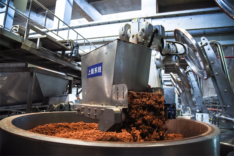 在全新打造的黄舣酿酒生态园里,配料、润粮、拌料、上甑、摘酒、发酵等传统酿制技艺的各个环节,与智能科技实现了深度融合。整合基酒酿造、基酒储存、灌装、智能化包装等全产业链功能版块,通过将大数据采集的优秀工匠技艺参数输入工业机器人,高效、低耗、优质、稳定地满足“配料精准、拌料均匀、轻撒匀铺、探汽上甑、量质摘酒”等传统酿酒工艺的要求,实现了酿造过程信息化、自动化、智能化。以领先行业的纯粮固态发酵、智能酿造、绿色酿造、资源要素循环利用为核心技术,将中国白酒的产能规模、绿色生态水平和基酒品质提升到新的高度,实现了一系列新的突破。