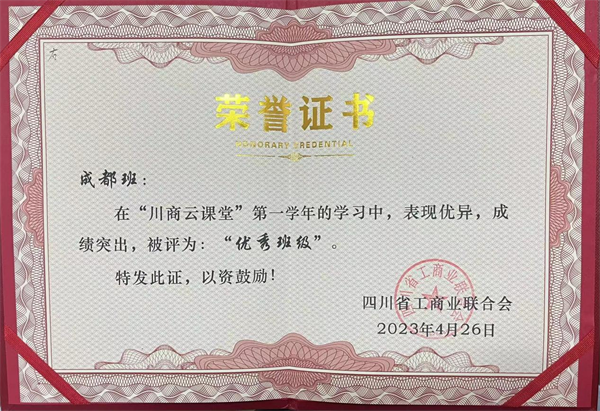 据悉,“川商云课堂”共组建42个班级,根据后台实时学习数据的报告,共评选出优秀班级6个,“川商云课堂成都班”获得此项荣誉。(张静)