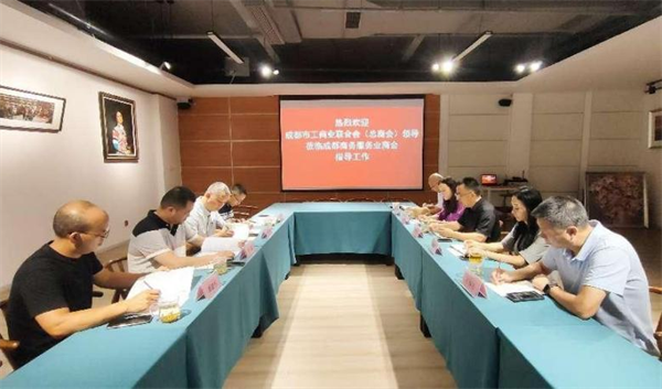 四川新闻网成都7月31日讯 7月28日,成都市工商联宣传处处长李春、经济联络处处长熊文高一行赴成都商务服务业商会,就商会“一带一路”工作情况进行调研。成都商务服务业商会会长、成都市总商会一带一路文创交流中心主任李洪武,商会轮值会长、泰和泰律师事务所高级合伙人马春燕,商会理事、成都市新津事丰医疗器械有限公司董事长石保社等参加座谈交流。
