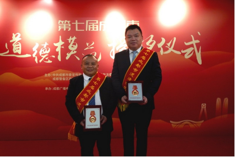 四川新闻网成都10月7日讯 近日,第七届成都市道德模范授奖仪式顺利举行。新津区新生代企业家商会副会长单位——成都彩虹电器(集团)股份有限公司总经理刘斌,新津区新生代企业家商会秘书长、四川矮哥园林绿化工程有限公司总经理叶玉明通过基层推荐、群众推举、专家评审、媒体公示,获得“第七届成都市道德模范”荣誉称号。