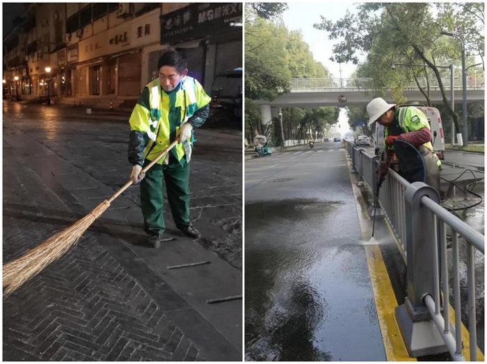 近日,气温骤降给环卫工作带来了更大的挑战。环卫工人们身穿厚重的棉衣,戴着帽子和手套,拿着扫帚、高压水枪冲洗道路,除去道路上的污渍和尘土,脚下每一条干净的街道都浓缩着他们对城市的爱。