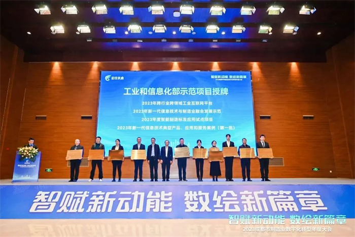 1月5日,在成都市经信局市新经济委指导、成都市工业互联网发展中心主办的“智赋新动能 数绘新篇章”2023成都市制造业数字化转型年度大会上,千嘉科技代表接受了荣誉授牌。