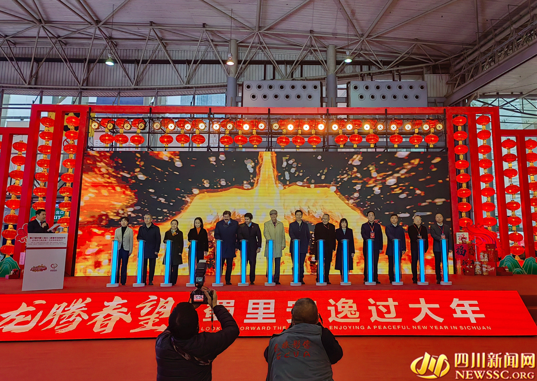 四川新闻网-首屏新闻成都1月23日讯(记者 赵萍 陈淋 摄影报道)大红灯笼挂起来,祥龙醒狮舞起来,摸龙头讨好兆头、心愿墙打卡、好运投壶、惊喜拆盲盒、幸福照相馆……1月23日,成都世纪城会展中心人头攒动,氛围热烈,过年的仪式感扑面而来,“第27届四川新春年货节购物节”开幕啦!