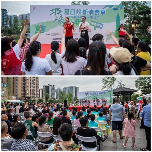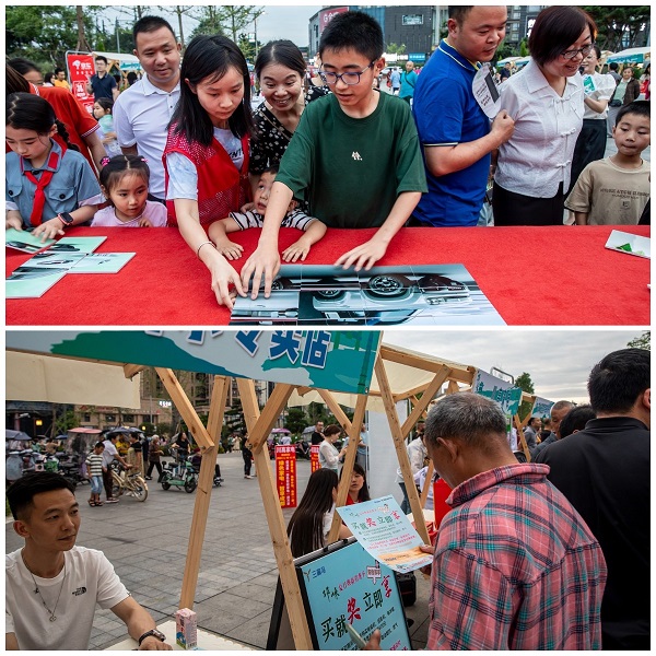 活动现场设置“舞台+互动”两大活动区域。京东家电、大诚电器—海尔专卖店、成都汇丰港奇瑞4S店、邛崃智兴诚五菱4S店、比亚迪文景丰泰4S店等汽车家电品牌入驻互动区(政策宣传文明集市),解读绿色智能汽车和全品类家电产品以旧换新促销活动,以现场讲解、发放文创礼品、宣传资料等形式面对面向群众宣传旧换新政策,链接“焕新消费季”优惠。
