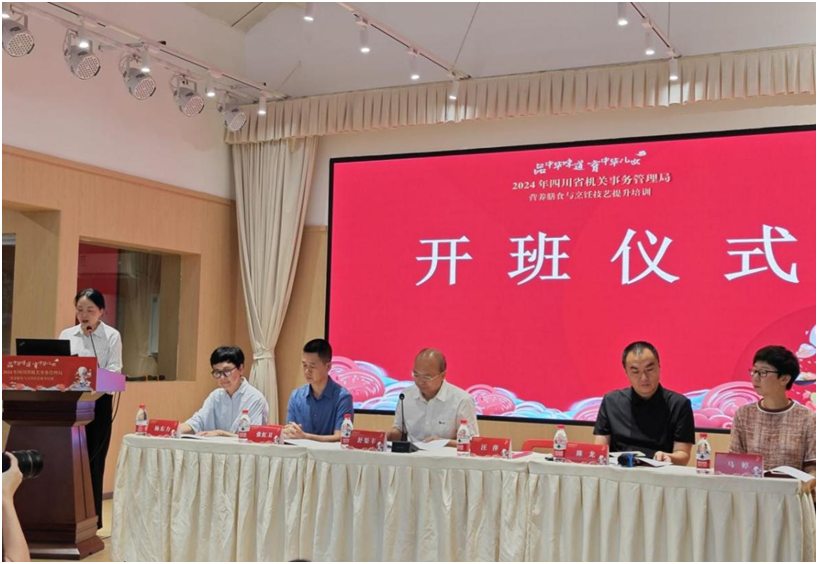 四川新闻网成都7月4日讯(记者 张妍 摄影报道) 为全面提高四川省机关事务管理局系统食堂职工综合素质水平,搭建展示技能水平、菜品设计和创新能力的平台,7月3日,由四川省机关事务管理局服保中心承办的2024年省机关事务管理局营养膳食与烹饪技艺提升培训开班仪式在省直属机关西马棚幼儿园举行。省机关事务管理局党组成员、副局长舒渠丰,干休二所副主任张红卫,四川旅游学院烹饪学院党委书记陈龙,成都市金牛区人文学前教育研究会副会长杨东力,四川省学生营养与健康科学促进会理事马婷出席开班式,省机关事务管理局服务保障中心主任汪萍主持开班式。