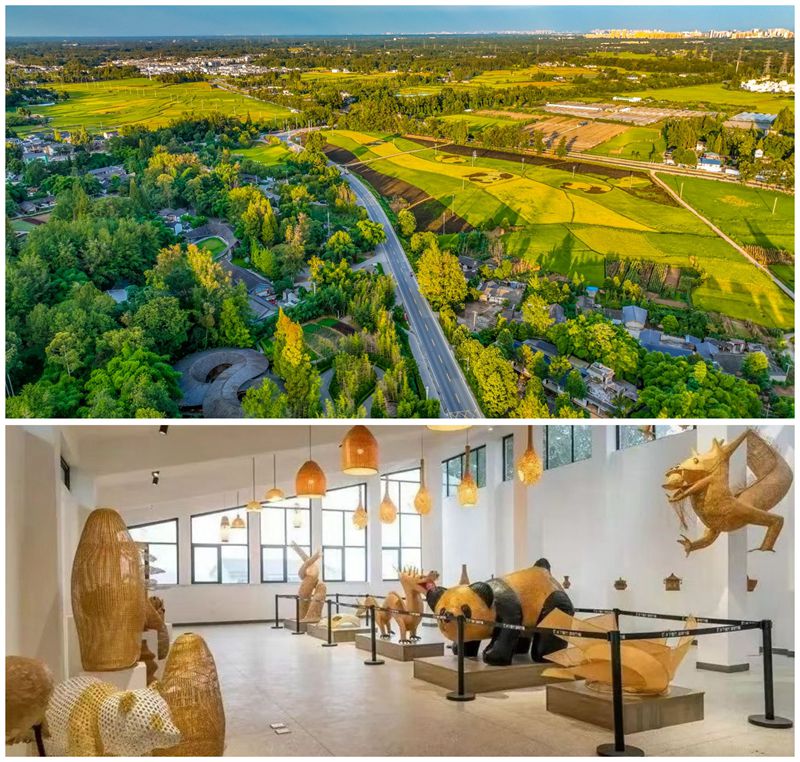 道明竹编历史悠久,编制材料、工艺独特。作为“中国民间艺术(竹编)之乡”,道明镇所产竹编造型别致,精巧细腻,经久耐用。而道明镇竹艺村便是以竹编艺术品为生的网红艺术村落。以∞符号为设计理念,道明竹编为特色的竹里建筑成功入选威尼斯建筑双年展,获得WA中国建筑奖。