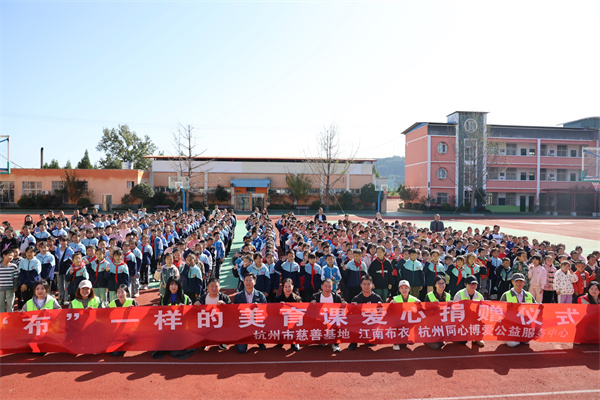 本次“布”一样的美育课—— 广元公益行活动,由杭州市慈善基地、江南布衣和杭州同心博爱公益服务中心联合主办,广元市剑阁县教育局与杨村小学参与协办。当天杨村小学全校师生、江南布衣员工志愿者以及同心博爱工作人员等四百余人参与活动,合力助推乡村儿童美育实践见行见效。