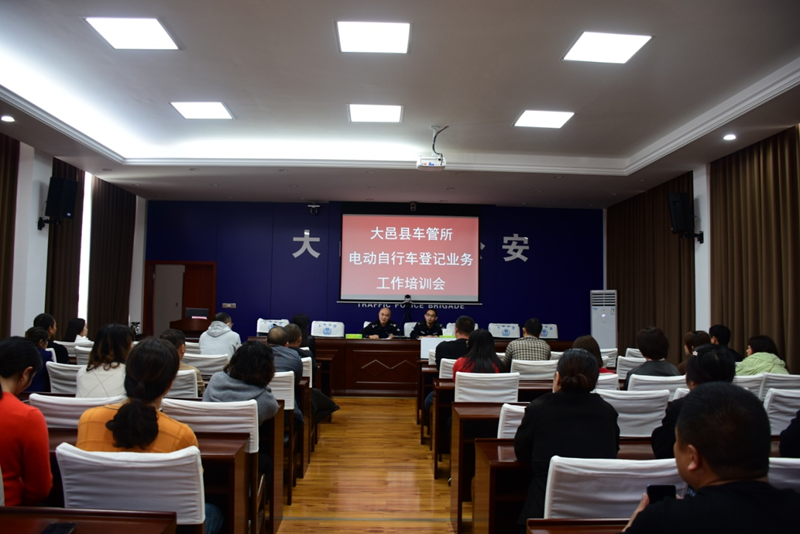为进一步加强辖区道路交通管理工作,规范电动自行车上牌秩序,扎实推进电动自行车上牌工作,11月1日下午,大邑县交警大队车管中队在交警大队三楼会议室组织辖区50余家电动自行车代办登记服务网点业务员召开了《电动自行车登记上牌业务工作培训会》。