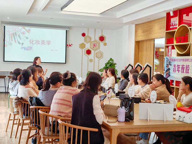 白天上班,晚上“充电”,家门口的“青年夜校”正成为众多年轻人业余时间的新追求、好去处。11月5日晚,顺江社区青年之家内,“悦容悦己·妆点青春”零基础美妆一班的最后一课精彩开讲。20余名青年女性在专业美妆师海兰的带领下,学习并巩固保湿打底、粉底涂抹、眼妆呈现、妆发搭配等完整妆容技巧,为此次美妆世界的奇妙之旅画上一个完美句号。