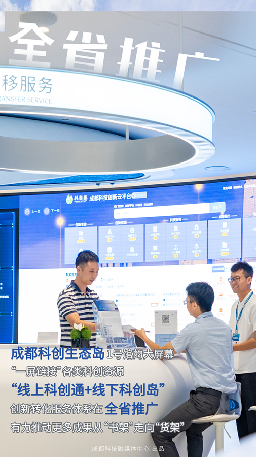 下一步,成都将链接全省的科创资源和产业资源,推广“线上科创通+线下科创岛”创新转化服务体系,加快推进科技成果转化,让更多科技产品从“书架”走上“货架”。