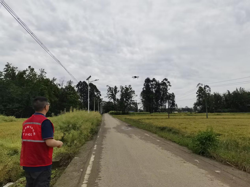 理赔人员使用无人机查勘承保地块