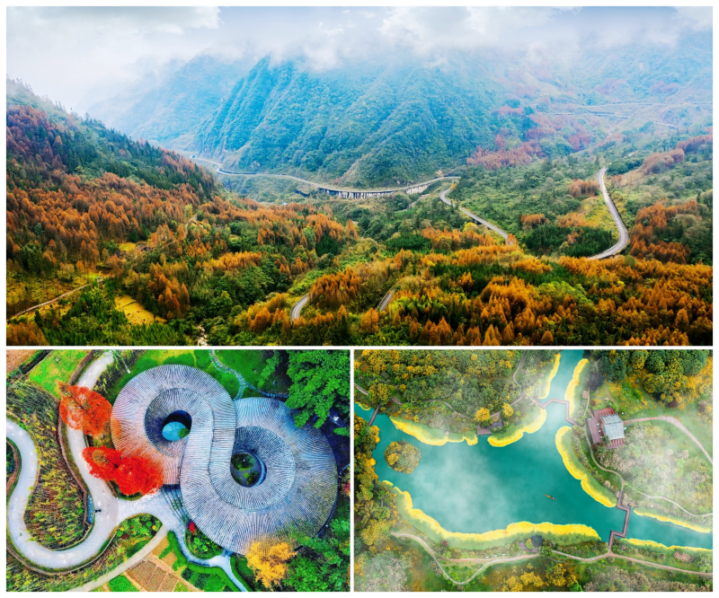 崇州桤木河湿地公园,位于“全国最美休闲乡村”白头镇五星村,这里彩林与湿地环绕,天府好田与天府乡居相映生辉。在道明镇竹艺村景区,绵延数里的无根山茂林修竹,与“最美乡村公路”重庆路相依,与晴山岷雪作伴。登上怀远镇前锋村,走进文井江镇绚丽彩林,可尽情打包最新鲜的氧气。