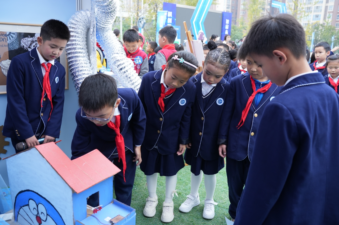 据了解,此次科技创新大赛从今年4月开始作品征集,历时近6个月。本次大赛“动静”结合,精彩纷呈,分为现场作品展示和现场挑战赛两部分,各个学校现场展示了创意十足的3D打印、变废为宝等,同学们自己设计组装的模型、小发明等作品,还有天马行空想象力十足的科幻画。现场比赛涵盖了Scratch(python)编程赛、3D建模设计比赛、地理知识挑战赛、魔方、遥控四旋翼无人机、世界机器人大赛-ENJOY AI运动会赛项等极具观赏性的赛事。