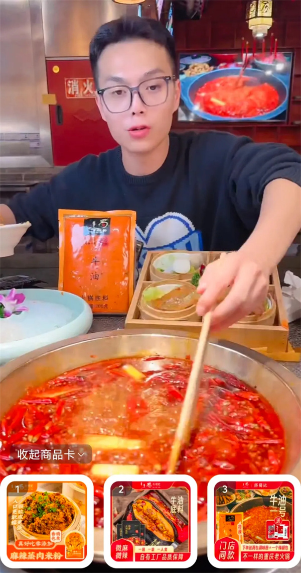 而抖音电商也为历蜀记走向全国消费者创造了更为便捷的渠道。“抖音有为我们和达人牵线搭桥,我们21年和泸州老窖合作过,也和杨迪、浪味仙等合作过。”周光辉说,每一个来历蜀记下单的用户,都能通过高质量视频全方位了解产品的方方面面,吃上专业、健康、干净的火锅底料。