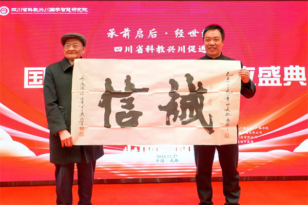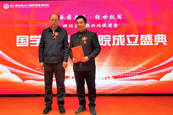 11月27日,四川省科教兴川促进会国学智慧研究院成立大会,在成都明宇尚雅饭店怡廷厅内正式举行。省文化和旅游厅原一级巡视员李存儒,省文旅厅原副厅长赵红川,及四川省人民政府文史馆资深馆员王庆余,西南科技大学原副校长卢忠远,青城地区武术名家潘崇福,书法艺术名家胥鸿仪,省老庄学会副会长雷鹏高等众多专家学者出席了成立大会。