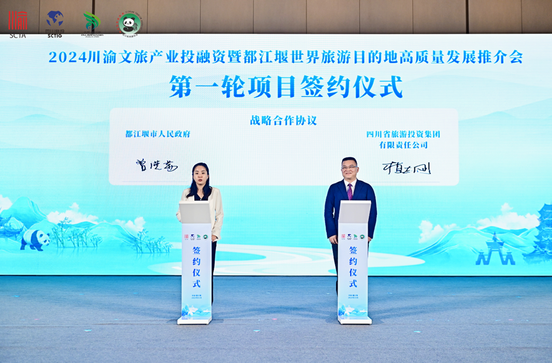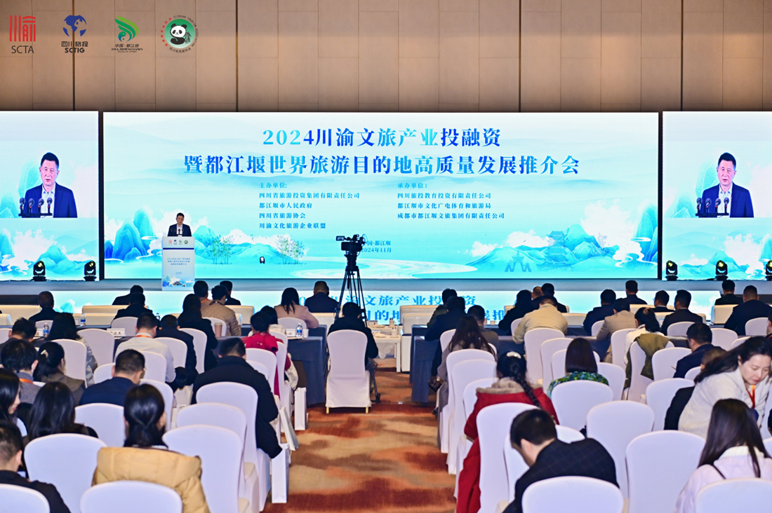 11月29日,由四川省旅投集团、都江堰市人民政府、四川省旅游协会、川渝文化旅游企业联盟联合主办的“2024川渝文旅产业投融资暨都江堰世界旅游目的地高质量发展推介会”在都江堰市圆满举行。重庆市文旅委、四川省文旅厅、四川省属有关企事业单位、成都市人民政府、都江堰市人民政府、全省各市(州)文旅相关部门代表、天府旅游名县、国家级行业协会与其他社会组织、中国非物质文化遗产保护协会单位代表及社会媒体约400人参加活动。