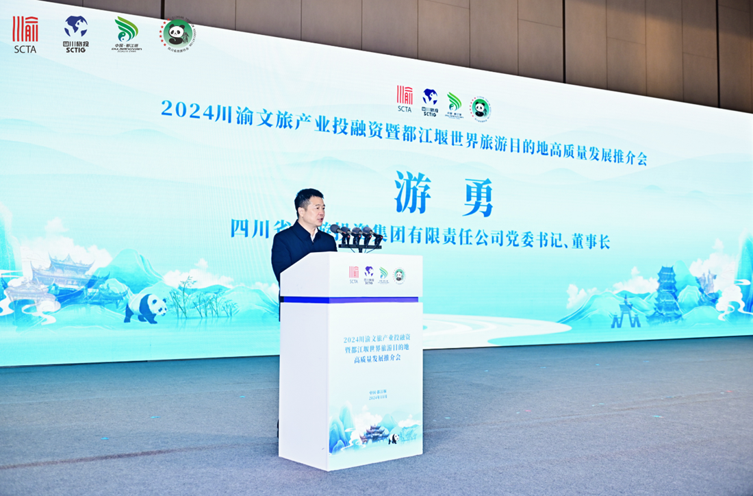 四川省旅投集团党委书记、董事长游勇在致辞中表示,加快建设世界重要旅游目的地,是省委、省政府作出的重大战略部署,更是四川省旅投集团的重大使命任务。集团始终坚持服务中心大局、聚焦主责主业,秉持开放合作共赢、主动担当作为的理念,实施以做强实业为“一体”,做大平台、做优投资为“两翼”的“一体两翼”发展战略,增强助力全省文旅产业转型升级、优质旅游资源整合、开展重大文旅投资“三大功能”,构建旅游实业、旅游资产、旅游投资、文旅新经济四大业务板块,布局“吃住行游购娱”全产业链发展格局,加快建成一流国际旅游投资集团。