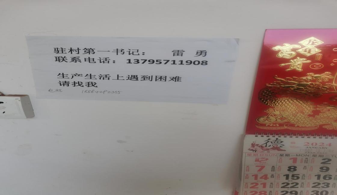 雷勇在全村各队张贴的为民服务电话号码