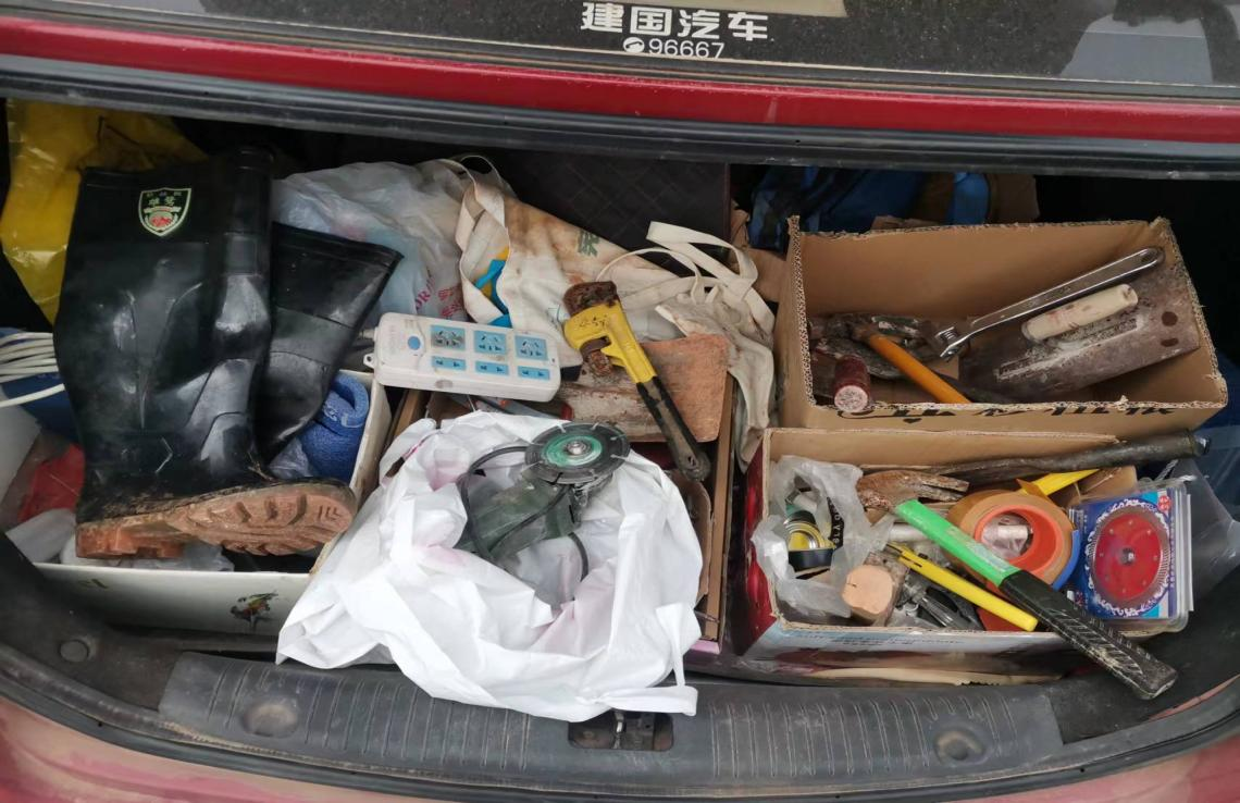 雷勇小车后备箱里长期放着的便民服务工具