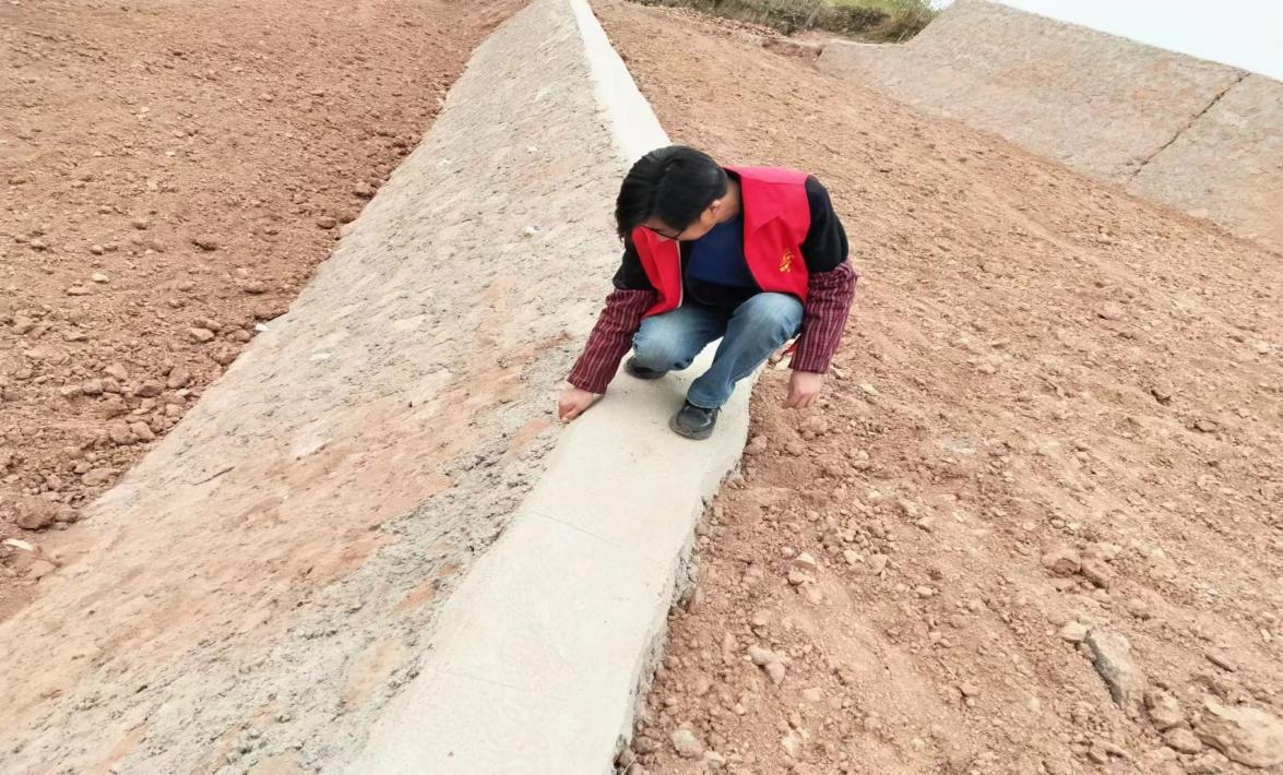 雷勇巡查土地整理项目中保坎质量情况