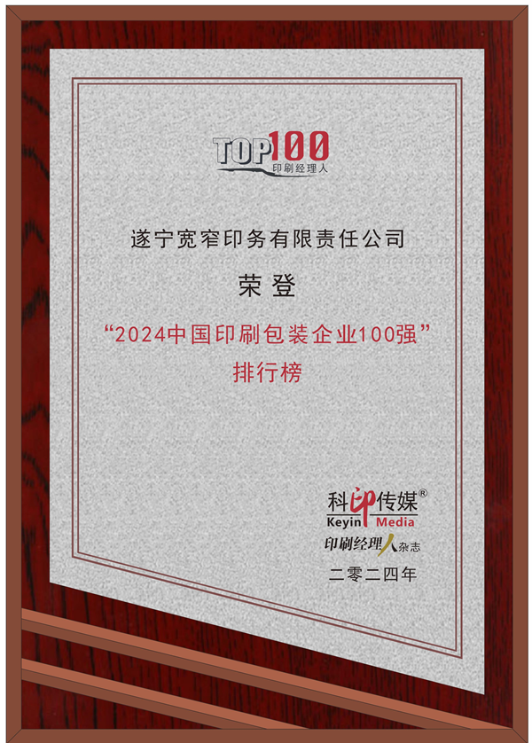 遂宁宽窄印务入选“中国印刷包装企业100强”
