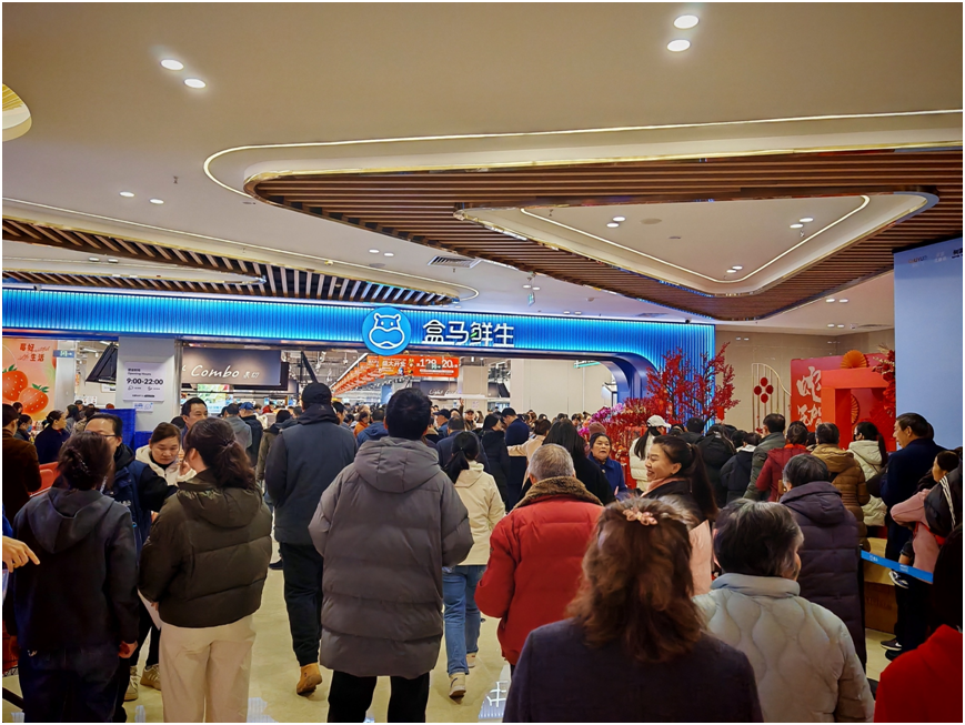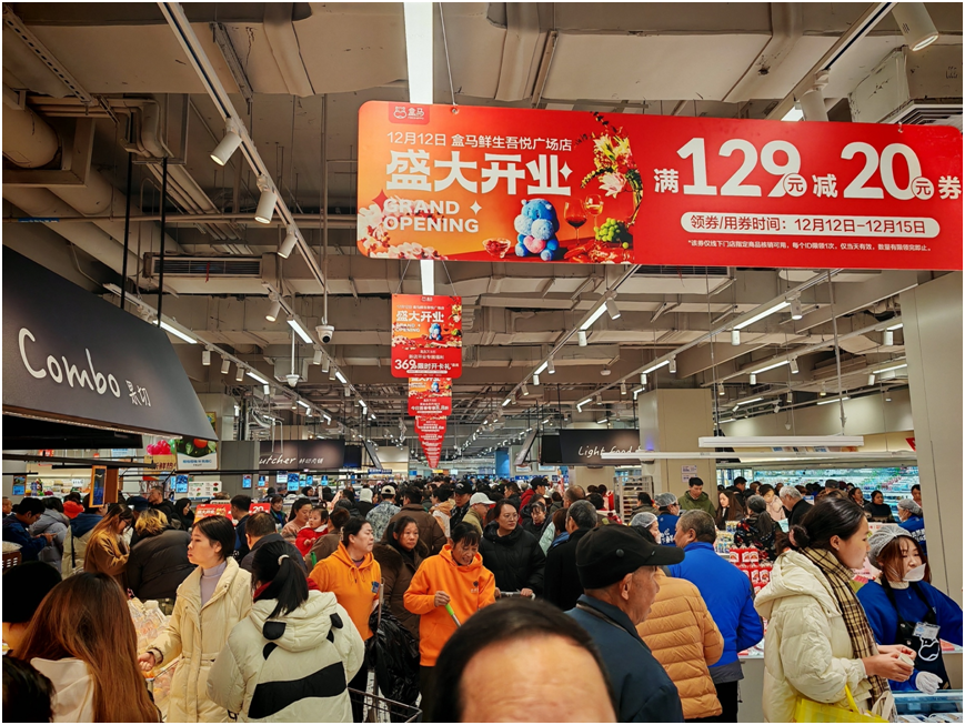 盒马龙泉吾悦广场店开业,现场人气高涨。