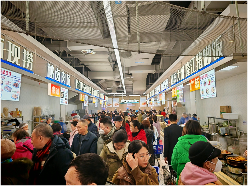 盒马门店打造的“小吃街”,备受消费者欢迎。
