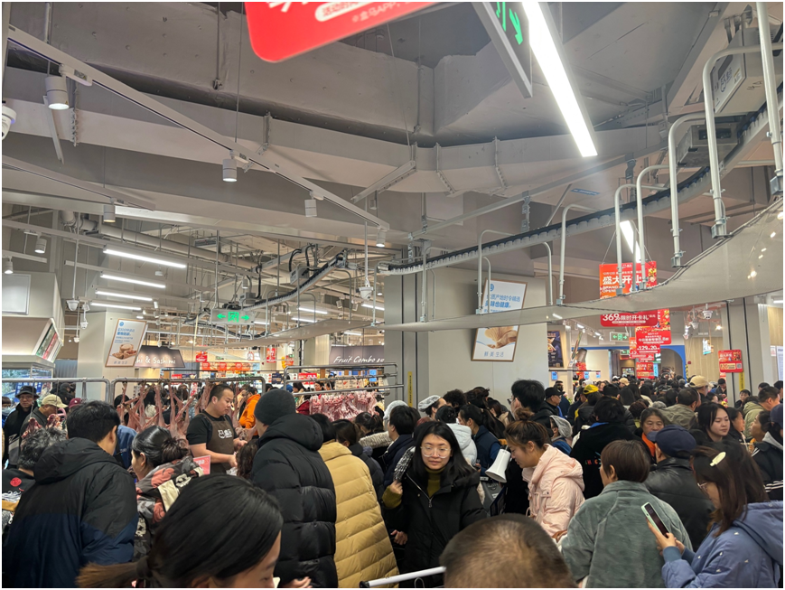 记者了解到,开业2小时后,两家新店都出现了客流过大被迫限流的情况。工作人员提醒,有意愿前往购物的消费者,可以错峰出行,避免现场拥挤。