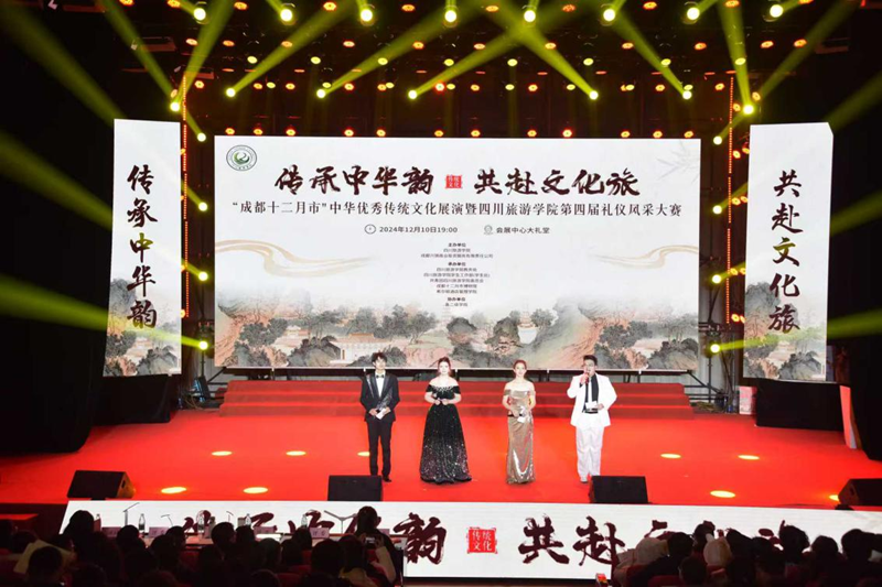 传承中华韵,共赴文化旅。12月10日晚,由四川旅游学院与成都兴锦商业投资服务有限责任公司联合举办的“成都十二月市”中华优秀传统文化展演暨四川旅游学院第四届礼仪风采大赛在四川旅游学院会展中心大礼堂精彩上演。