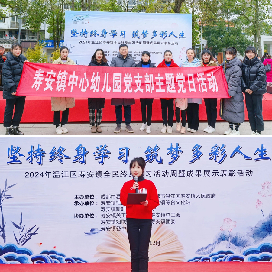 为营造“人人皆学、处处能学、时时可学”的良好氛围,12月13日上午,温江区寿安镇中心幼儿园充分利用社区教育的形式及资源,积极参加了2024年温江区寿安镇全民终身学习活动周暨成果展示表彰活动。