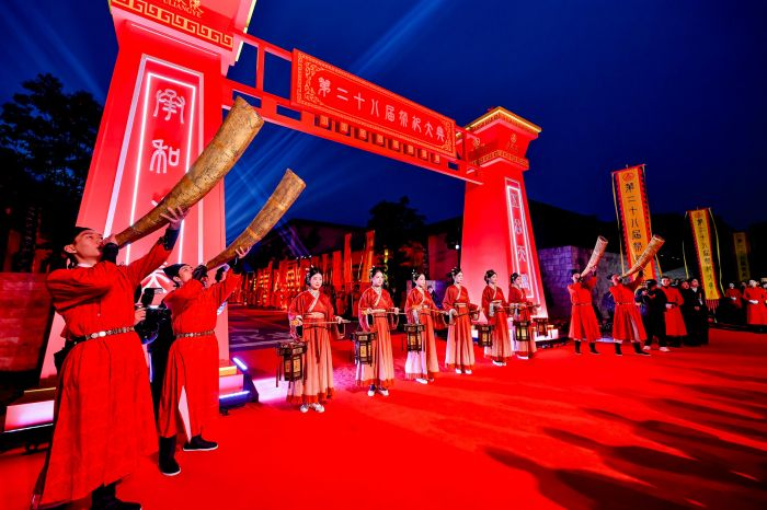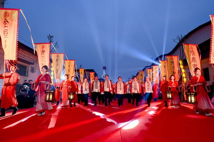 天道地纲,国纪饬昌。流远厚植,斯有八荒。夏有仪狄,献禹醴汤,先僰圣女,复酿仙浆……第五篇章《成》通过“祭文宣读”“行酒礼”方式,“祝国强、民富、业兴!”“祈风调雨顺,五谷丰登!”“续传承、谋团结、实奋进、思创新、奔未来!”