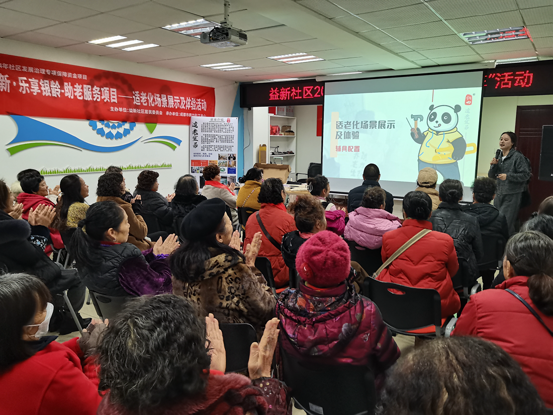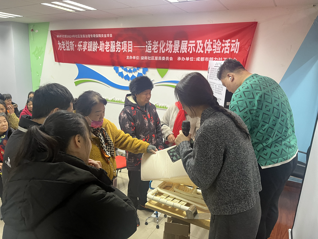为推动银发幸福发展,保障老年人福祉权益,2024年12月19日上午,成都市朗力社工中心联合益新社区,在社区党群活动室开展了一场适老化场景展示及体验活动,旨在通过现场展示和亲身体验,向辖区老年人及其家属普及适老化改造的好处,以及正确选择和使用辅具的重要性,共同推动构建更加友好、便捷的老年人生活环境,共吸引了40多位居民参加活动。
