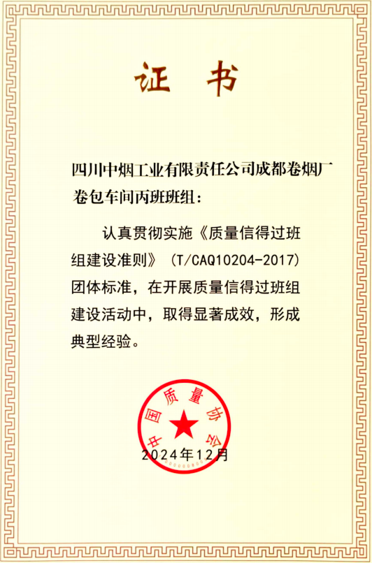 四川中烟工业有限责任公司成都卷烟厂卷包车间丙班党支部坚持以习近平新时代中国特色社会主义思想为指导,深入学习贯彻党的二十大和二十届二中、三中全会精神,紧紧围绕“政治功能强、支部班子强、干部队伍强、作用发挥强”标准,加强支部建设,深入推进党建与业务工作融合,在新的起点上推动支部党的建设迈上新台阶。