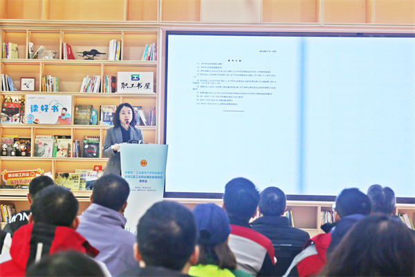 参访结束后,发布会正式拉开帷幕。新就业形态劳动者代表现场进行分享,通过工会驿站这个载体在职工关爱、健康服务、权益保障等方面让他们深切地感受到了来自工会组织这个大家庭的深情厚谊与温暖关怀。随后,锦江区总工会党组书记、常务副主席温萍上台正式发布《锦江区工会驿站建设管理规范》,从驿站规划布局、类型和评级、建设与运营管理、服务内容与方式及评价考核等多个方面进行了系统阐述,旨在为全区工会驿站建设提供统一标准和参考,切实提高工会驿站标准化建设、制度化管理、规范化服务水平,建设新就业形态劳动者、户外劳动者等群体愿来、常来、想来的工会服务站点。