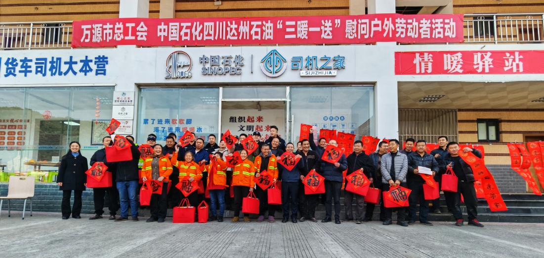 1月15日,正值全国工会服务户外劳动者日,中国石化四川石油分公司联合达州市总工会,在中国石化万源北加能站“工会驿站·爱心驿站”开展“三暖一送”新春慰问活动。