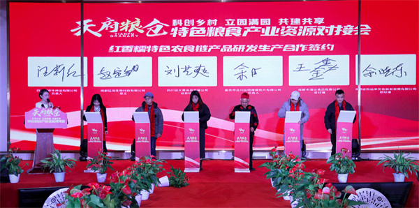 在供需合作签约环节,四川川农牛种业有限公司与温江区万春镇和林村、公平街道分水惠和村、永宁街道八角社区签订红香糯种植示范基地合作协议,通过合作推广红香糯种植,实施科学规范的种植技术,提升产量和品质,带动集体经济组织和种植农户增收致富。