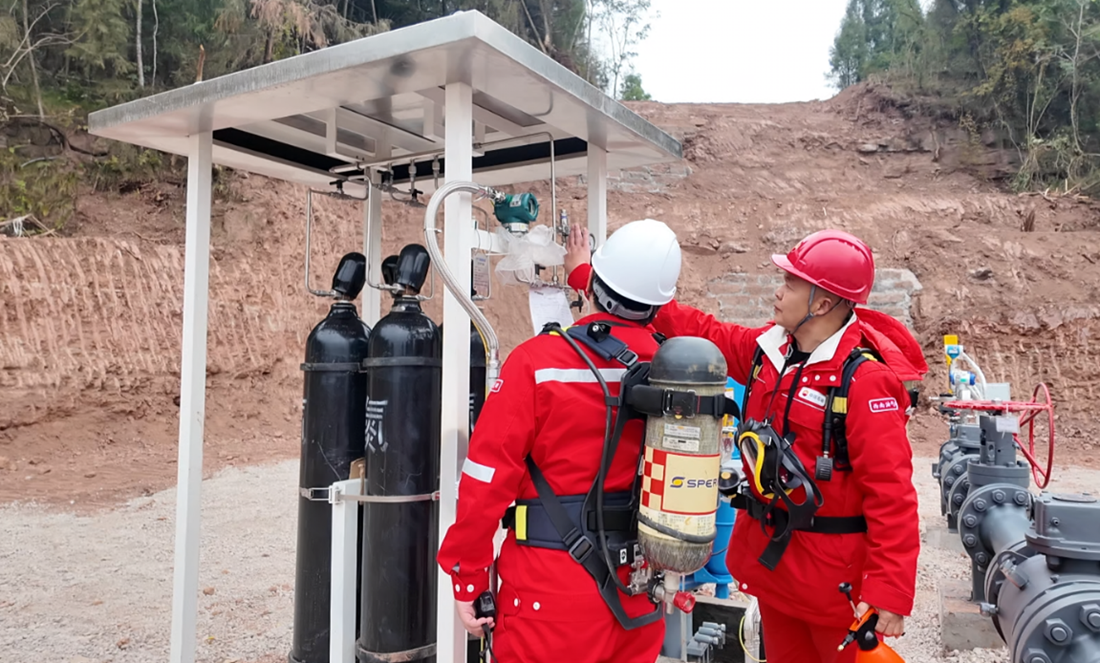 作业现场,彭嵩不断与团队成员沟通作业进度,检查设备状态,严谨而高效地执行着每一项操作。经过数小时的紧张作业,彭嵩和他的团队也迎来了胜利的曙光,对讲机里传来讯号:“氮气置换工作顺利完成。”彭嵩和他的团队休整之后,又即将奔赴下一个“战场”。
