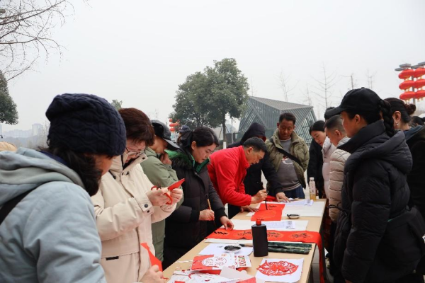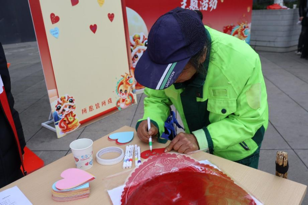 写春联、贴心愿、剪窗花……摊位刚一摆上,就吸引了众多返乡的农民工兄弟、探亲回乡的旅客们前来围观。“麻烦帮我写副春联嘛,我带回老家,谢谢。”在写春联摊位,带着女儿准备回重庆过年的桂小琴选了一副心仪的对联,“平时在成都务工,带一份美好寓意的春联回家贴起,希望来年一帆风顺。”非遗剪纸摊位前,在青羊区文艺志愿者协会剪纸志愿者的带领下,不少市民自己动手剪出“福”字、小蛇、灯笼、花朵等不同图案的窗花。