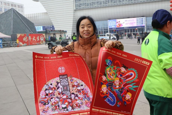 “赏年画·过大年”活动区吸引了众多旅客围观,“这个年画给我来一张嘛,回去贴在老家的屋头安逸得很!”返乡的工人李大哥说到。“这个年画真好看,贴上一下子就感觉年味儿浓了!”成都西站农民工综合服务中心的工作人员把领取的年画和窗花贴上后开心地说。