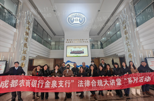 为进一步强化员工的法纪观念和合规意识,推动合规文化融入日常管理,成都农商银行金泉支行于2025年1月23日组织机构负责人、客户经理等关键岗位员工,前往金牛区人民法院旁听醉驾酒驾案件庭审,以警示教育的方式深化合规建设。