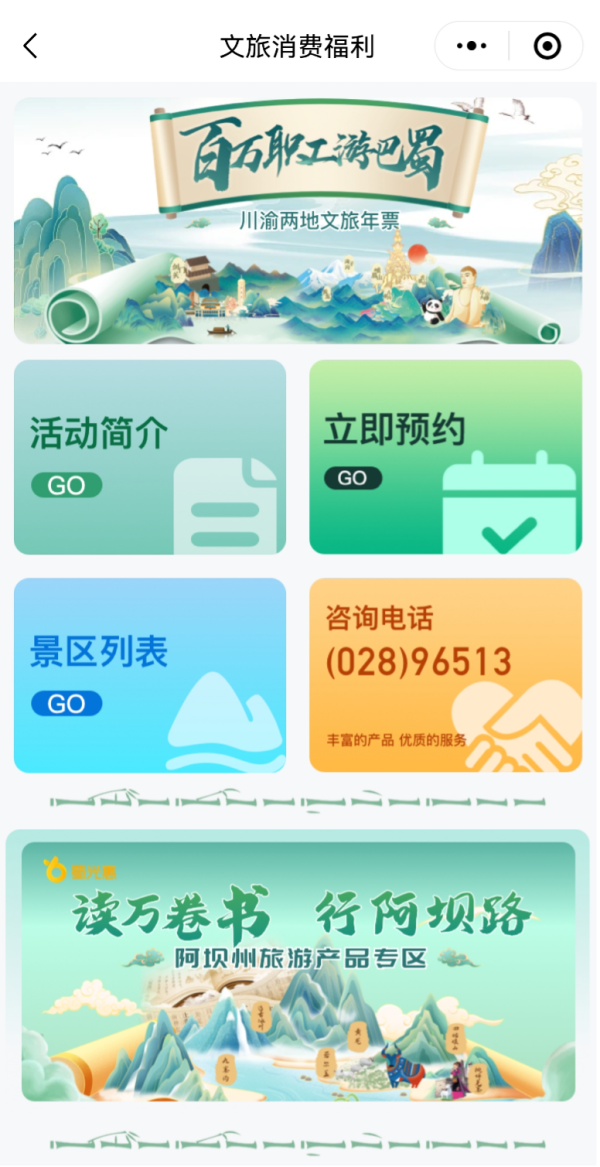政策保驾,服务护航。根据《四川省总工会、四川省文化和旅游厅关于开展“百万职工游巴蜀”活动的通知》(川工发〔2023〕64号),为做好旅游景区年票产品策划设计和服务保障,四川省文化和旅游厅与四川商投集团签署合作协议,由“蜀光惠”数字消费平台承接“百万职工游巴蜀”活动,全面升级文旅福利产品设计,以“一张文旅年票,解锁川渝两地文旅胜地”为核心,整合川渝地区80%以上的高价值景区,各基层工会只需为职工购买200元/人/年川渝两地文化旅游年票,即可享受总价值超6000元的福利,凭年票免费畅游九寨沟、乐山大佛、稻城亚丁、仙女山等数百家川渝5A、4A、3A级景区。此外,平台还在持续引入川渝区域内的博物馆、纪念馆、文艺演出等优质文旅项目,丰富职工文化生活体验场景,增加200元年票的“含福量”。