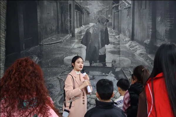 而当大家站在窄巷子的“窄巷回眸”照片墙前,贺老师又引导大家近距离观察,感受每一块砖里承载着的岁月痕迹。