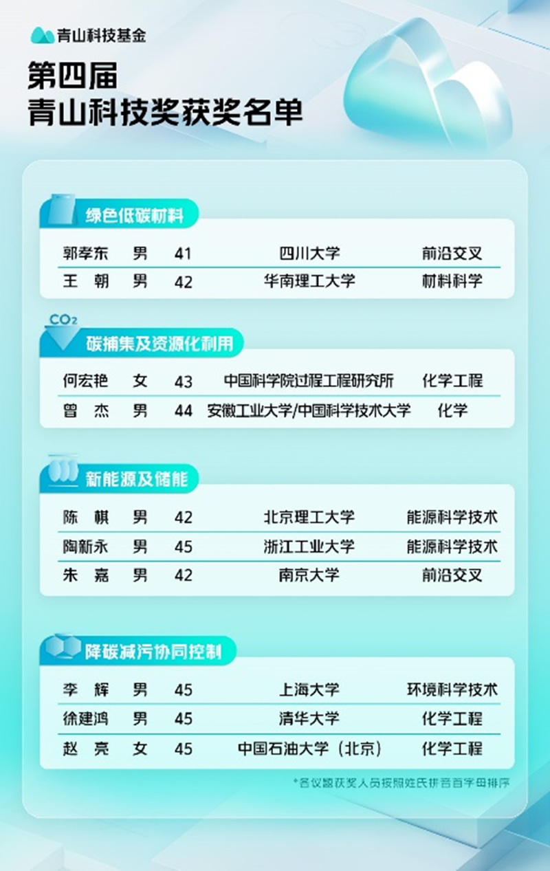 ▲第四届青山科技奖获奖名单