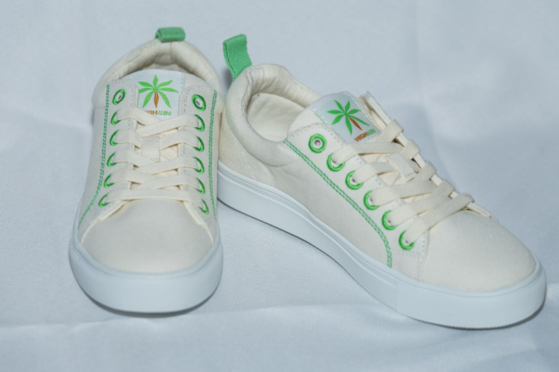 ▲王朝用土豆、玉米等为原材料制备成的可降解鞋(拍摄:弘历)