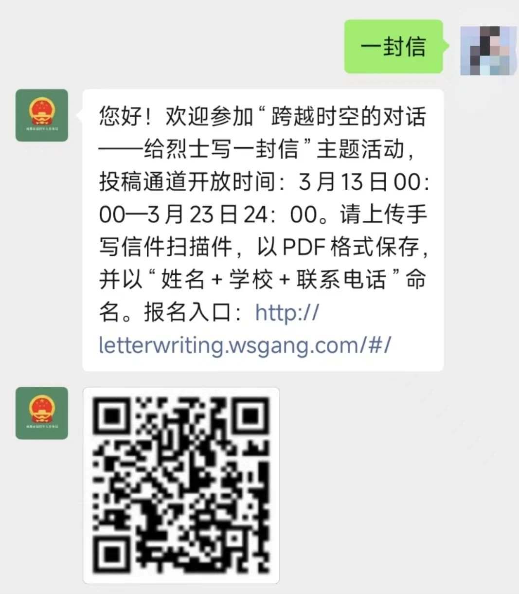 投稿方式:关注“成都市退役军人事务局”公众号,对话框输入“一封信”获取投稿通道。