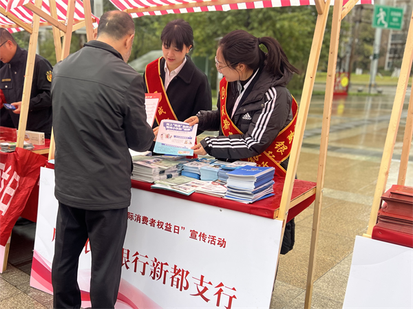 3月15日,成都农商银行新都支行积极响应新都区市场监督管理局和消费者协会号召,开展了“3·15”国际消费者权益日专场宣传活动。活动现场聚焦“保障金融权益·助力美好生活”主题,通过发放宣传资料、案例解析等形式,向公众普及防范非法集资、电信诈骗及存款保险等金融知识,切实提升消费者风险防范能力,获得群众广泛认可。