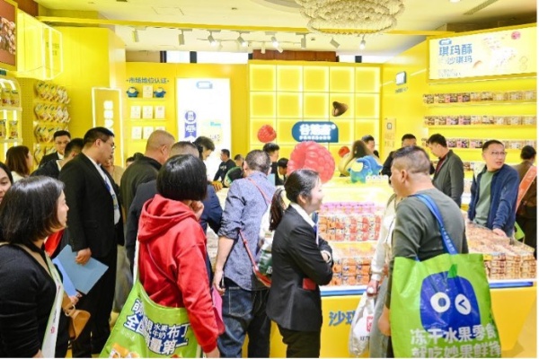 步入活动现场,电梯口、酒店各房间变身一个个临时展台,现场人头攒动、市民热情高涨。来自五湖四海的糕点、果冻、豆干、茶叶等食品层出不穷,它们包装精美、香气四溢,让人不禁食欲大增。“欢迎大家进来看一看、瞧一瞧”“我们这儿提供免费试吃”的吆喝声不绝于耳,不少商家展位前还围满了前来试吃、采购的市民,吆喝声、询价声、欢笑声热闹非凡,整个酒店喜气、烟火气十足。