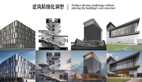 升级后的“迁想AI”2.0融合全量AI创作参数和智能对话交互技术,提供“一键生图”、实时在线画板编辑等功能,适配不同设计场景和设计阶段的创作需求,支持设计师快速迭代方案和精准调整图像细节,灵活调整控制参数,选择多元化的建筑图像控制模块, 实现构图迁移与灵感发散、效果图氛围一键转换、建筑设计精细化出图,推动团队数据共创与经验积累,形成开放共赢的设计生态,逐步实现数据要素+AI高效融合的创作模式,促进建筑设计与管理从“经验驱动”向“智能与数据双驱动”转变。